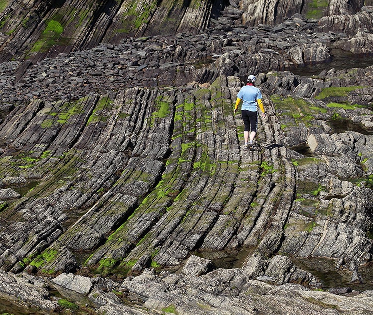 Junto al puerto, en bajamar, puede observarse un pequeño tesoro de la geología: un complicado pliegue en forma de S o slump, que se formó en el fondo marino y tiene más de 10 m de espesor o potencia.